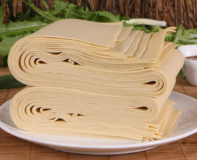 豆腐皮也很讲究水质。淮北的地下资源丰富,水质自然含卤,因此,用天然的地下水蒸煮出来的豆浆鲜美香淳,制作出来的豆腐皮口感劲道,堪称豆腐皮中一绝。
