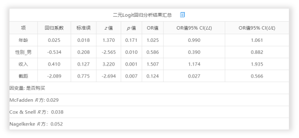 案例: 当前有一份数据,用于研究消费者对购买奢侈品的影响因素,自变量包括收入水平、性别、年龄。