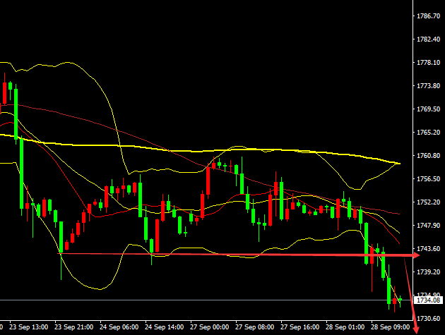 黄金日内先涨后跌,亚盘走出一波反弹后在1755一线的压制下走出一波下跌行情,欧盘延续下跌,日内已经大跌了20多个点,我们早上1754空。1738出局,欧盘1740反手多,止损出局,今天总体还是不错的,美盘反弹继续空。