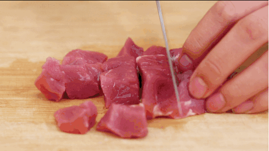 3,锅中倒油大火烧热,倒入牛肉粒迅速翻炒至变色,盛出备用。
