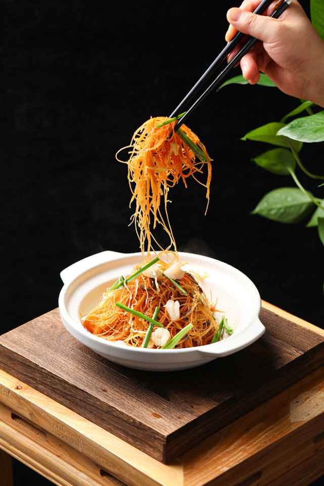 金灿灿的海皇干捞粉,干爽而不腻的口感十分美妙,这也是一道经典的港粤料理菜式。味道鲜中带辣,具有色泽红亮、鲜味浓厚、醇香微辣的特点。