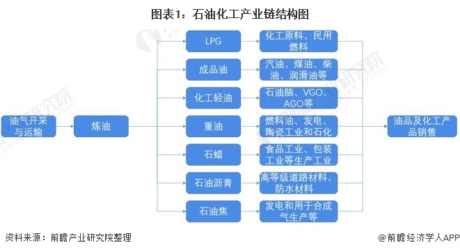 石油化工产业上游主要是原材料的生产运输作业,包括油气开采和运输,中游是炼油和石油化工产品加工制造过程,下游为产品销售环节,为农业、能源、交通、机械、电子、纺织、轻工、建筑、建材等工农业和人民日常生活提供配套和服务。