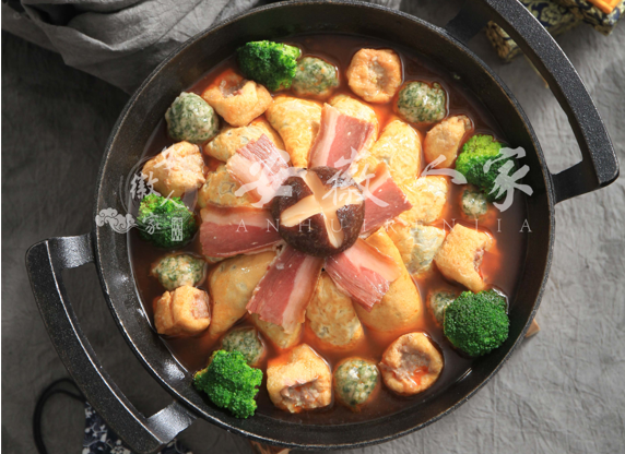 安徽人家餐厅的一品锅浸透着不同的味道,素菜清爽,粉丝润滑、肉丸一般为鸭肉所制,香嫩可口,并且清热降火,是皖南人最为喜爱的肉食。干笋吸收了高汤的浓香,被激发出笋的清新,让人在吃完一锅后涮一涮油腻,感觉更加爽口。