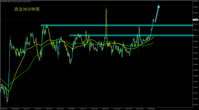 方向明确,思路清晰,果断执行!既然是涨,那就不要犹豫,回调直接多!横有多长,竖有多高!黄金此前横盘震荡,当前二次突破,多头非常强势,方向已经明确,突破1780只是时间问题!