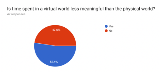 有52.4%的人们认为把时间花在现实世界中相比于虚拟世界更加的有意义。
