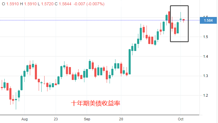 最近的5个交易日,十年期美债收益率并没有出现单边下跌,只是走出了小区间的过山车行情。尤其是最近两个交易日,美债收益率保持在相对较高的水平,而EURUSD却连续大涨,这违背了两者之间反向波动的关系。所以,从十年期美债的角度考虑,EURUSD的上涨不会持续太久,更不会形成趋势反转。
