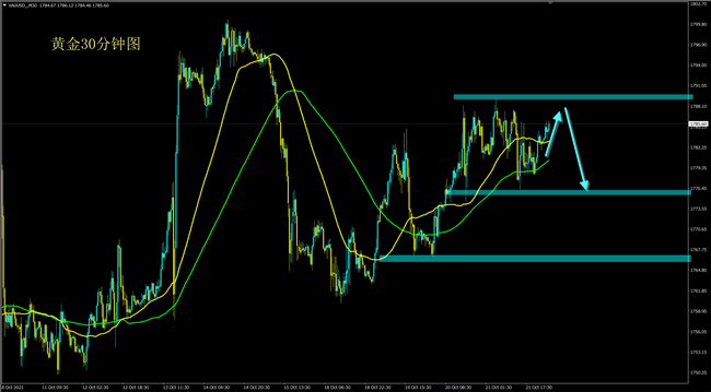 周五(10月22日)亚洲时段,现货黄金小幅上涨,交投于1785附近。周四(10月21日)金价几乎持稳,通胀蹿升之际黄金受到市场青睐,但美元及美债收益率的上涨限制了金价的涨势。