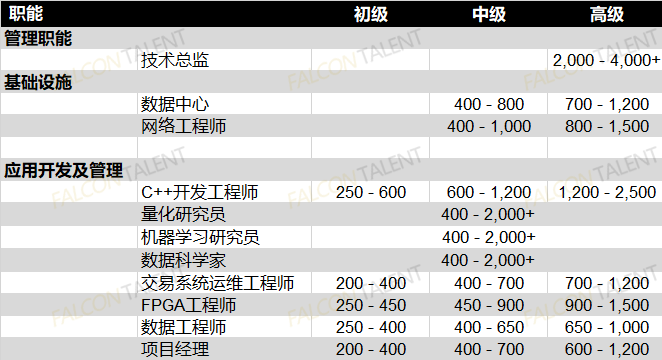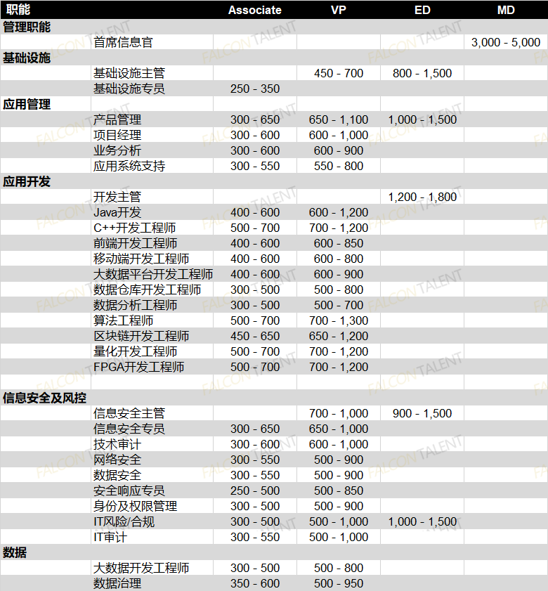 报告数据源自我们的专业顾问基于数据库中20,000多位金融科技从业人员的最新薪资汇总,大致取市场50-75分位。