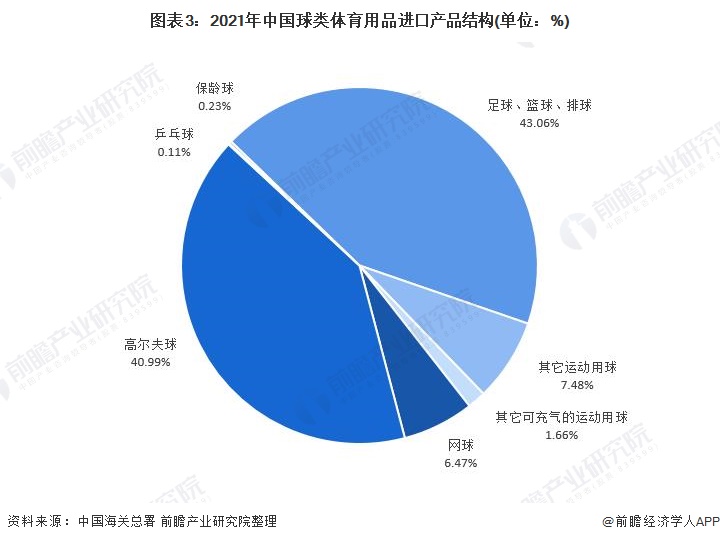 根据海关总署的数据显示,“足球、篮球、排球”(HScode:95066210)在2021年1-5月进口金额最高,达到了979.6万美元,占比达到43.06%;其次是“高尔夫球”(HScode:95063200),进口金额为932.34万美元,占比达到了40.99%。