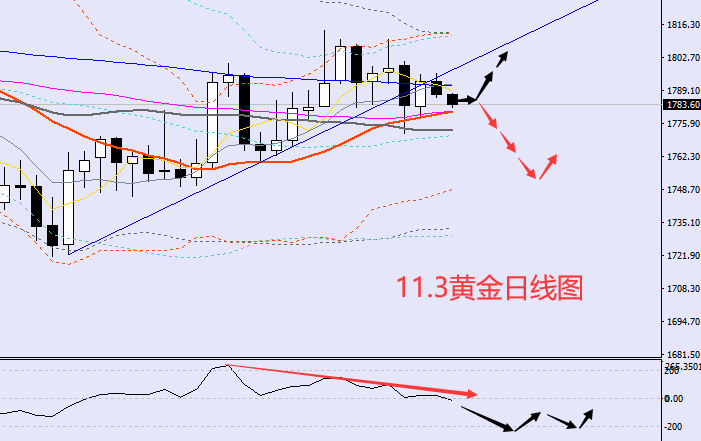 昨日黄金虽有测压1795/96动作,但最终还是迫于市场对于美联储利率决定的预期,而选择回落调整,日线收得一阴线,再度贯穿跌回5、10日线下。