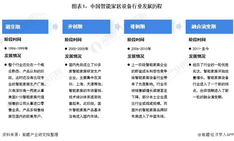智能家居在我国的发展经历了四个阶段:萌芽期/智能小区期、开创期、徘徊期和融合演变期。