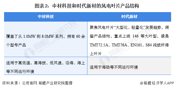 整体来看,中材科技虽然成立较时代新材较晚,但依托出中国建材集团有限公司的研发优势和背景,中材科技发展较快。而时代新材发展较早,2002年已经在上交所上市;其叶片产品在2010年首次走出国门,远销智利、白俄罗斯等国。2017年,时代新材涉及海上风电业务,其海上风电叶片实现首单突破。2018年,时代新材的首支72米海陆两用风电叶片正式下线。