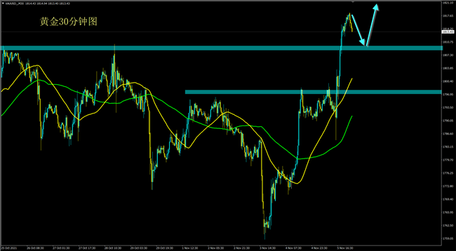 黄金周五再次强势大涨,并突破前高1813的压制,非常强势!