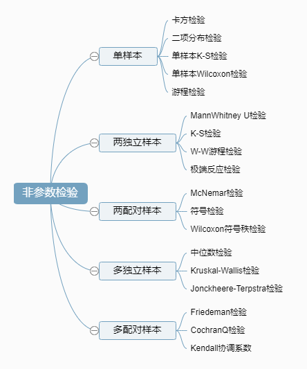 按照样本数量分类,可以将非参数检验方法分为几个方面: