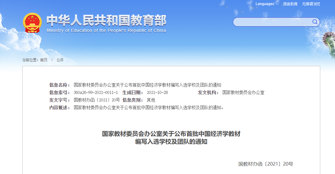 以下是通知全文及首批中国经济学教材编写入选学校及团队名单: