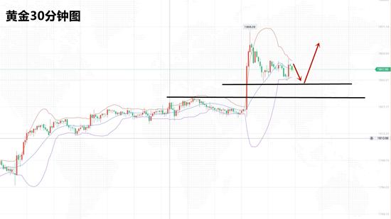 黄金昨日大涨,但凌晨回撤最低1840位置,虽然是强势的上涨走势,但也要注意大涨后调整的可能。所以我们依托凌晨回踩1840低点做多,等待回落后再多。当前黄金上涨遇阻前期高位的盘整压力,需要震荡后才能再次突破。