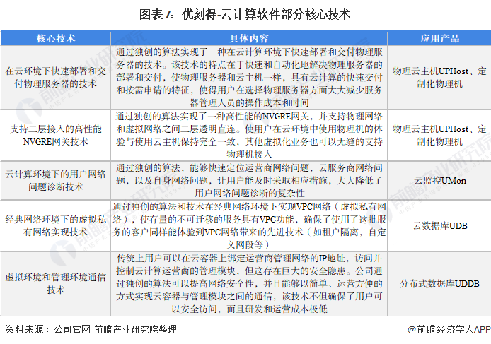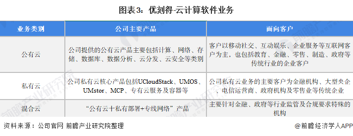 优刻得的云计算软件主要自主研发并提供计算、网络、存储等laaS和基础PaaS产品,以及大数据、人工智能等产品,通过公有云、私有云、混合云三种模式为用户提供服务,面向的客户主要包括互联网客户及教育、金融、零售、制造、政府等传统行业的企业客户。