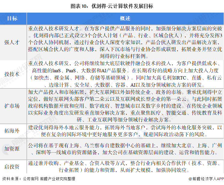 优刻得从研发人才、研发技术投入、销售市场等角度对今后云计算软件相关发展提出了相应的发展目标,其中提到加大底层软硬件融合技术的投入、加大高毛利业务研发、拓展现有市场等: