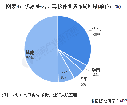 目前我国云计算软件龙头企业包括华胜天成、优刻得、东软集团等。从云计算软件的营收规模来看,优刻得营收规模较高,2020年实现营收规模24.5亿元;华胜天成2020年实现营业收入8.04亿元。从云计算软件业务营业毛利率来看,华胜天成毛利率较高,为28.73%;优刻得毛利率处于较低水平,为8.39%。区域布局、研发投入等无较大差别,具体对比如下: