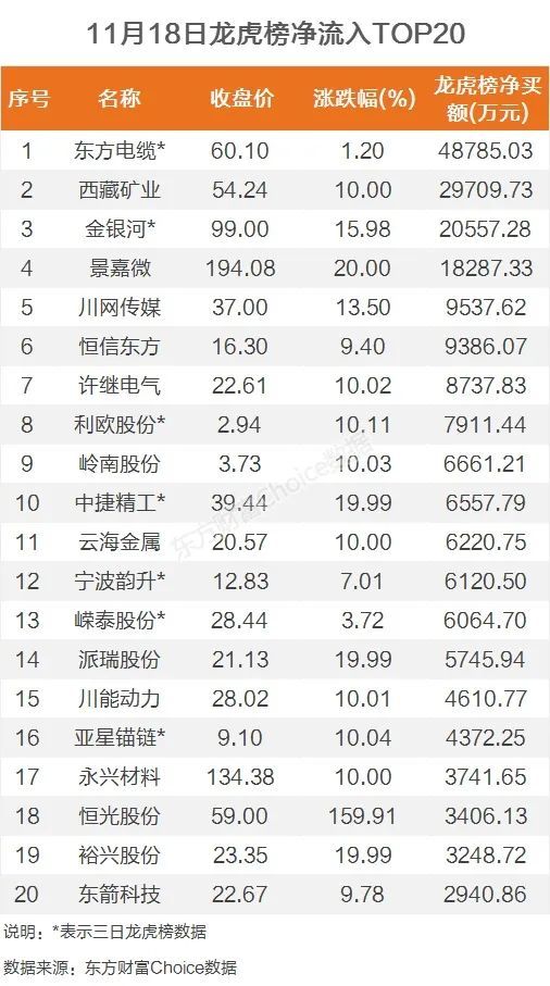 龙虎榜:4.9亿抢筹东方电缆,机构净买14股