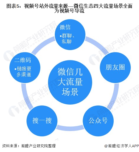 视频站外流量来源——微信生态几大流量场景全面为视频号导流。覆盖微信流量的所有重要入口,包括微信私聊、群聊转发,朋友圈转发、二维码,搜一搜、看一看,公众号等,免费流量资源丰富。