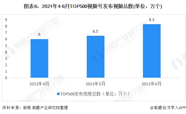在内容端,视频号内容体量增长迅速。根据新榜数据,榜单TOP500视频号发布视频总数由21年4月的6万个增长到21年6月的8.3万个,增长38%,视频号内容储备的丰富度正在迅速提高。但视频号未头部化,前列视频号占比较低。
