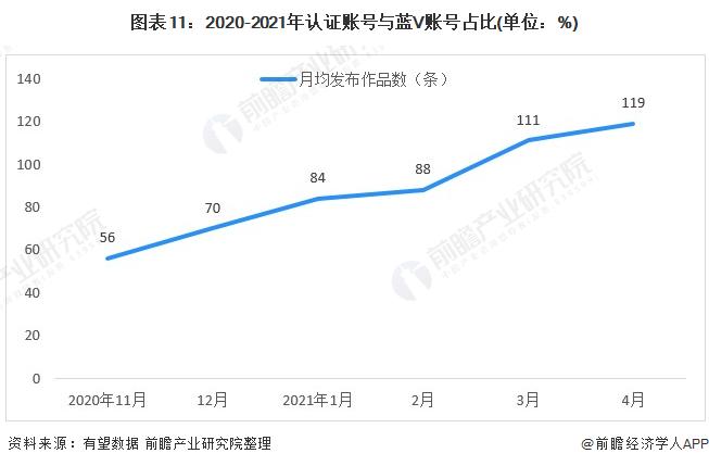 其中,机构、品牌方和专业内容创作者上传内容占比远高于个人账号。2021年6月,考虑排除机构运营的个人账号后的纯粹个人账号,上传视频占比仅约为10%。随着MCN入驻视频号,进一步繁荣视频号内容、商业生态。根据有望数据,4Q20-5M21,蓝V认证账号(企业或机构认证)占比从8%提升至20%,面对新的红利机会与流量赛道,许多原本在观望的企业机构纷纷入局,借力视频号为品牌赋能、破圈。