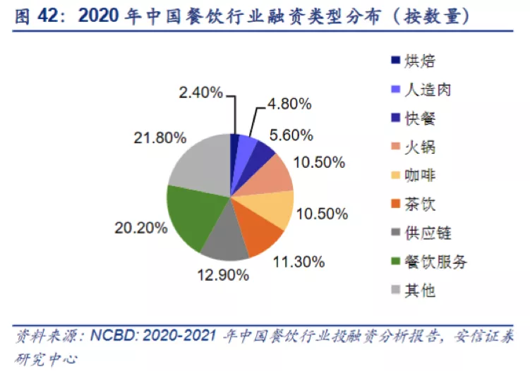 融资热点从2019年占比35.6%的咖啡转移至了供应链,2020年供应链占比为28.8%;