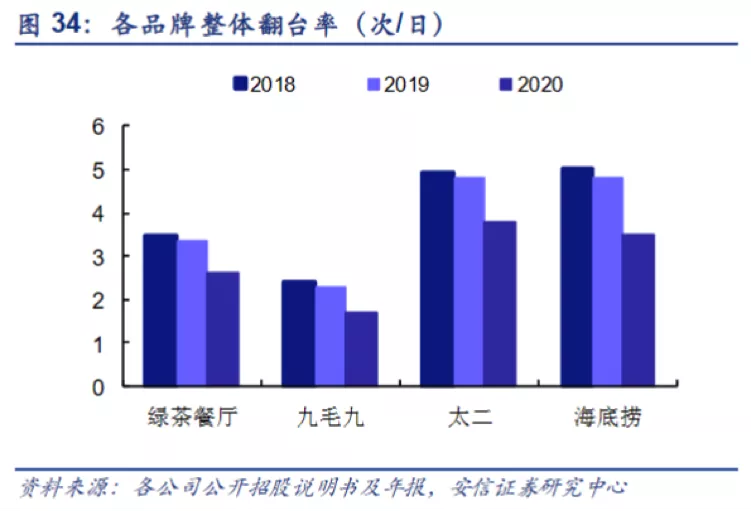 九毛九集团旗下九毛九品牌翻台率于2018年至2020年分别为2.4次/日、2.3次/日和1.7次/日,下降明显;