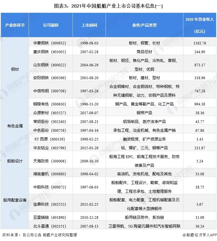 目前,我国船舶产业的上市公司数量较多,分布在产业链各环节,具体包括: