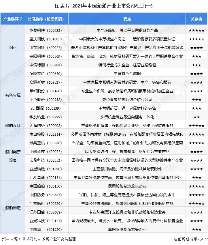 1、船舶产业上市公司汇总
