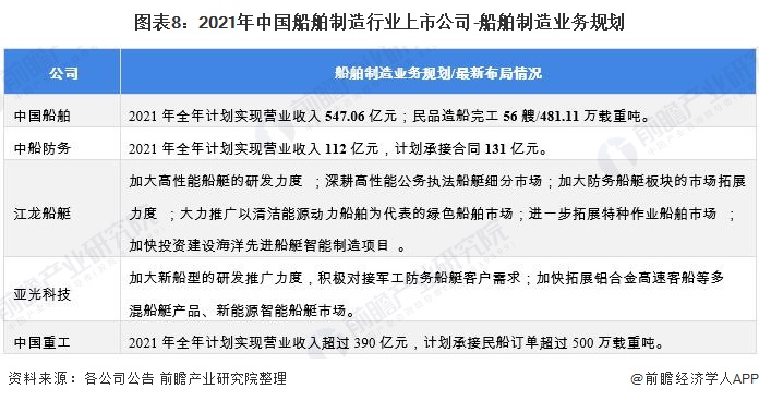 4、船舶制造行业上市公司船舶制造业务规划对比