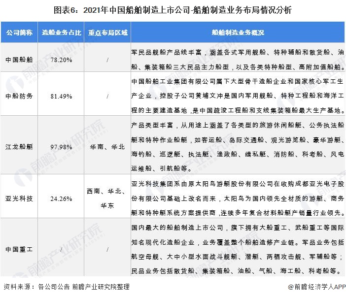 2、船舶制造行业上市公司业务布局对比
