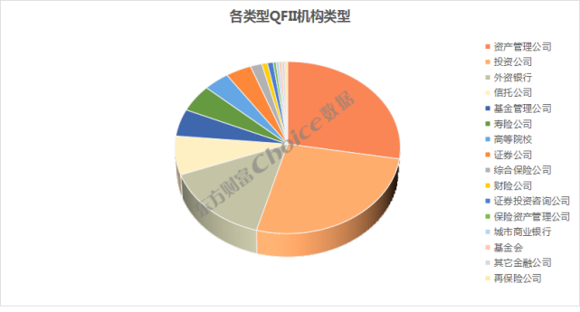 众所周知,以高盛、美林、摩根等为代表的知名QFII机构一直以来都是A股市场中长期投资的践行者,东方财富Choice数据统计显示,目前共有295家QFII,主要的投资机构类型有资产管理公司、投资公司和外资银行和信托等,最新投资额度1149.82亿美元。
