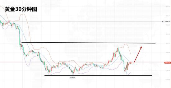 黄金当前震荡,下方1780位置支撑明显,连续三次下跌都获得支撑,已经在30分钟级别上构建三重底,今日还是守1780支撑做多看涨。