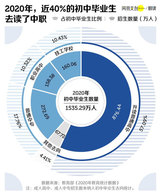 2020年,1535.29万人从初中毕业,有多少人去读了中职呢?