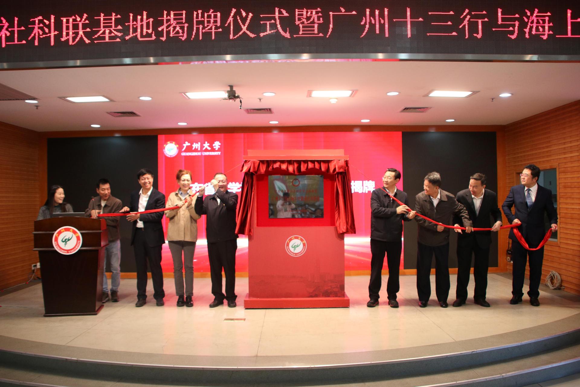 11月28日上午,省哲学社会科学重点实验室揭牌和省社科研究基地授牌仪式暨“广州十三行与海上丝路研究”高峰论坛在我校举行。广东省社科联党组书记、主席张知干,我校党委书记屈哨兵,省社科联党组成员、专职副主席曾赠,省社科联党组成员、办公室主任李翰敏,我校党委常委、副校长、省哲学社会科学重点实验室“广州十三行与海上丝路重点实验室”主任孙延明,实验室副主任、省政府参事李黎等出席活动。省社科联顾问、《南方智库专报》主编王永平研究员,中国第一历史档案馆原副馆长、中国档案学会档案文献编纂学术委员会名誉主任、清宫史研究会秘书长李国荣研究员,华南师范大学党委常委、副校长吴坚研究员,省文史研究馆馆员、省记协副主席顾涧清研究员,华南师范大学地理科学学院院长、中国地理学会副秘书长刘云刚教授等专家学者出席高峰论坛并作主旨演讲。我校相关职能部门、学院负责人参加活动。揭牌仪式由我校党委常委、副校长张其学主持。
