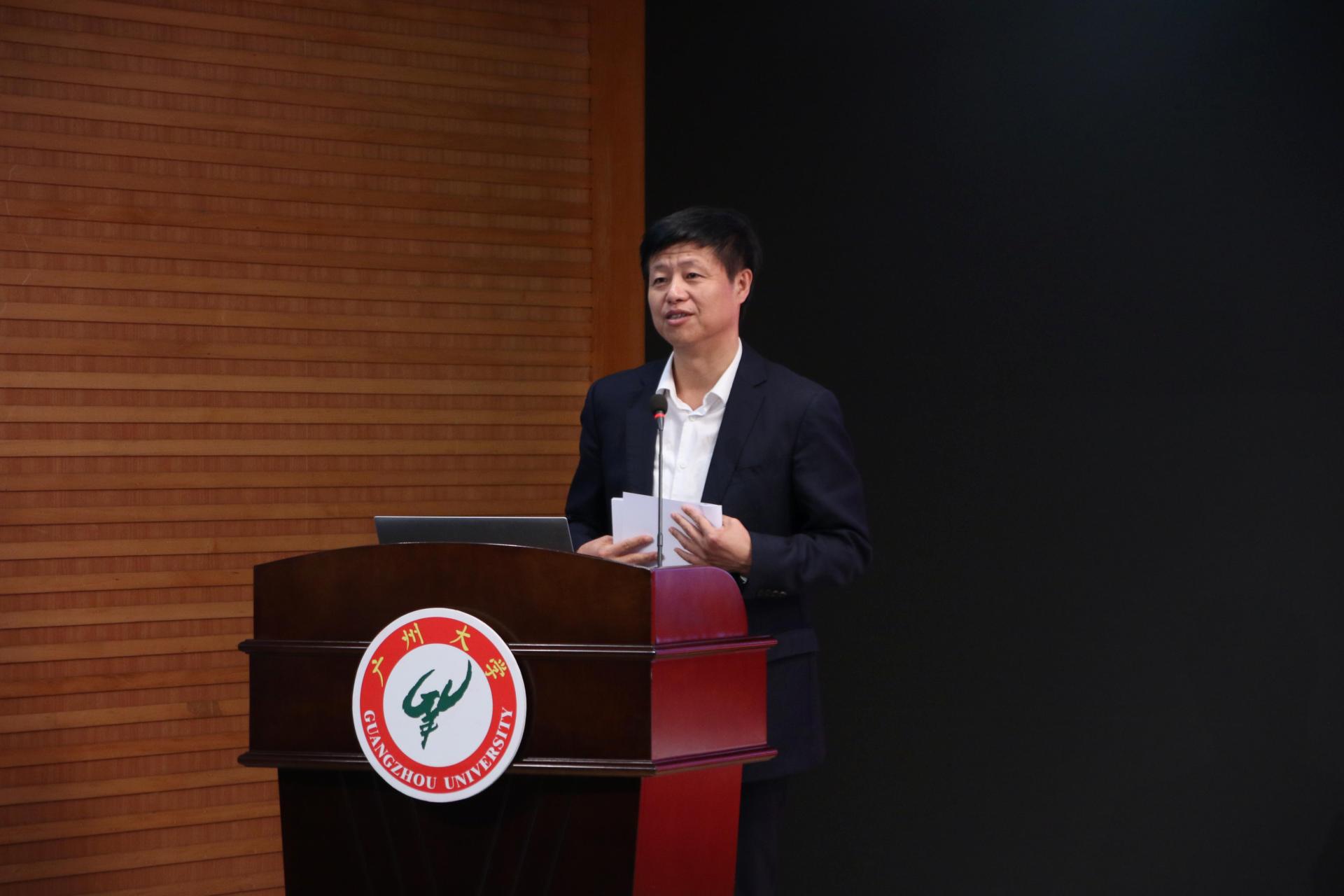 屈哨兵在致辞中介绍了我校的发展历程、文化底蕴和历史积淀,特别是党的十八大以来,学校矢志一流谋创新取得的一系列标志性发展成就,畅谈了学校未来发展特别是人文社科事业寻求新突破的总体构想、创新举措、关键抓手,希望省社科联加大扶持力度、助力学校相关学科领域全方位迈向高质量发展之路。他指出,学校将以“广州十三行与海上丝路重点实验室”跻身省哲学社会科学重点实验室首发阵容为契机,加强学校人文社会科学研究各学科的系统整合及与其它紧密相关的自然科学领域的融合发展,加强对创新人文社会科学研究路径、方法、形式等的积极探索,加快实现学校社科研究工作从量的积累迈向质的飞跃,进一步抢占发展新机遇、厚植发展新优势、撬动事业大发展。