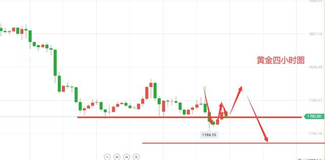 从4小时来看,4小时重新回到布林带下轨,技术结构上破位整理区间形成加速下行,4小时构造探高回落式的单边下行,长时间整理之后的破位加速,昨日击穿1780后顺势跟空看至1770。随着收在1770之上之后,1790转换成今日的空头临界点,完全破位上升台阶,本周的节奏基本上就是一个洗盘的走法,美元短期也是多空不定,使得黄金阴晴不定,回吐收低之后,今日短线思路将依托1790-1795做防守再看回落确认1765-1768附近的支撑,可能会围绕区间内拉锯运行。