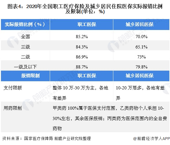 我国医疗保障体系由托底层、基本医保层、补充保险层等多层次构成。其中,基本医疗保险的保障能力有限。尽管基本医保的计划报销比例可高达90%,但居民的实际自付比例仍较高。根据《2020年全国医疗保障事业发展统计公报》显示,全国职工医疗保险的住院医保实际报销比例为85.2%,个人支付14.8%;而城乡居民的住院医保实际报销比例仅为70%,个人自付占比30%。