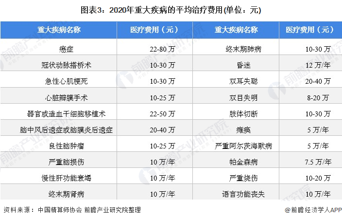 2020年,根据中国精算师协会数据显示,目前常见的重大疾病医疗费均在8万元以上,其中癌症仅医疗费用就高达22-80万之多,其他需要长期治疗的重大疾病如昏迷甚至每年高达12万元。