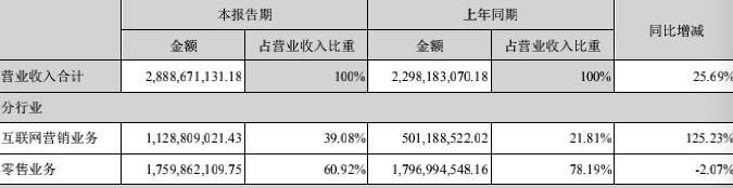凤凰网《风暴眼》发现,2021年之前,新华都旗下互联网营销业务归属于零售业务,2021年之后,新华都将二者区分开,把互联网营销业务作为单一业务进行统计。