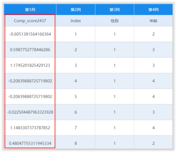 还记不记得,开始分析前,我们勾选了综合得分。现在返回到分析界面,就可以看到一个新生成的标题,名为Comp_scoreXXXX,这个就是综合得分。
