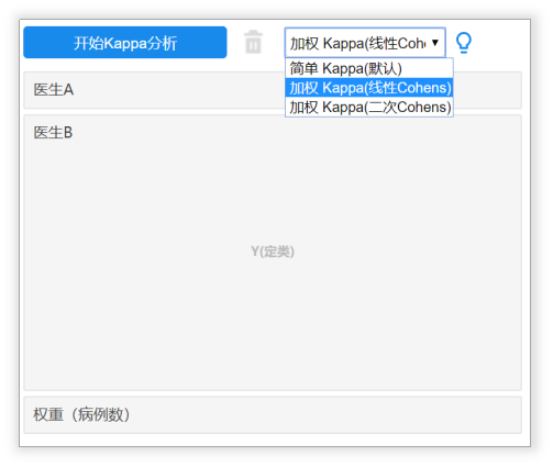 如果研究数据是绝对的定类数据(比如阴性、阳性),此时使用简单Kappa系数;
