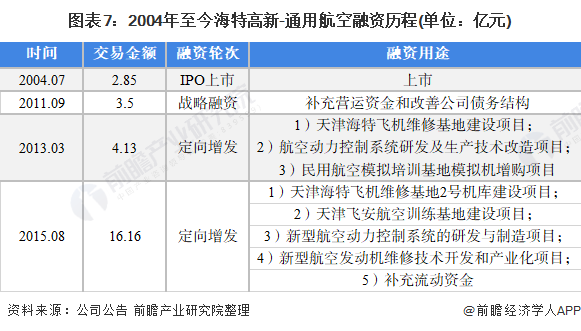 海特高新在2011年-2018年投融资较为频繁,主要用途以发展主营业务为主。近两年投资活动有所放缓,以横向投资为主;从融资角度来看,2013及2015年海特高新进行了两次定向增发,用途包括维修基地建设、维修开发项目等。