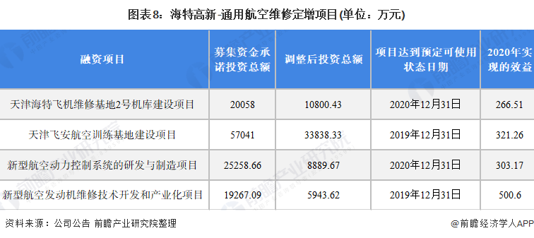 1991年海特高新成立,成为我国第一家民营航空装备研制与技术服务公司。经过30多年的发展与积累,海特高新在四川、天津等地建立了飞机维修基地,并且搭建了完善的技术体系和技术提供商。截至2020年底,天津海特飞机维修基地2号机库建设项目资金已全部到位,预计2021年12月31日该基地可投入运营。