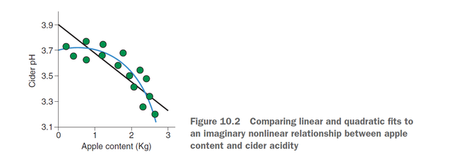 多项式回归首先看一个二次项拟合的例子,我现在想探讨苹果内容物apple content和苹果酸度cider acidity的关系,第一步应该是做出apple content和cider acidity关系的散点图,假如是下图: