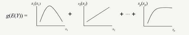 GAMs automatically learn a nonlinear relationship between each predictor variable and the outcome variable, and then add these effects together linearly, along with the intercept.