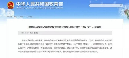 但是从去年开始教育部就发布《关于破除高校哲学社会科学研究评价中“唯论文”不良导向的若干意见》。