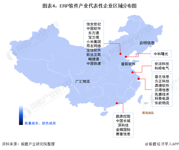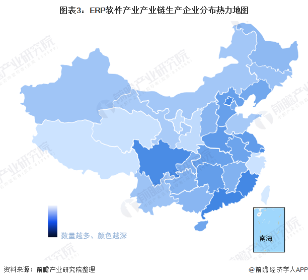 ERP软件产业产业链区域热力地图:企业分布较为分散